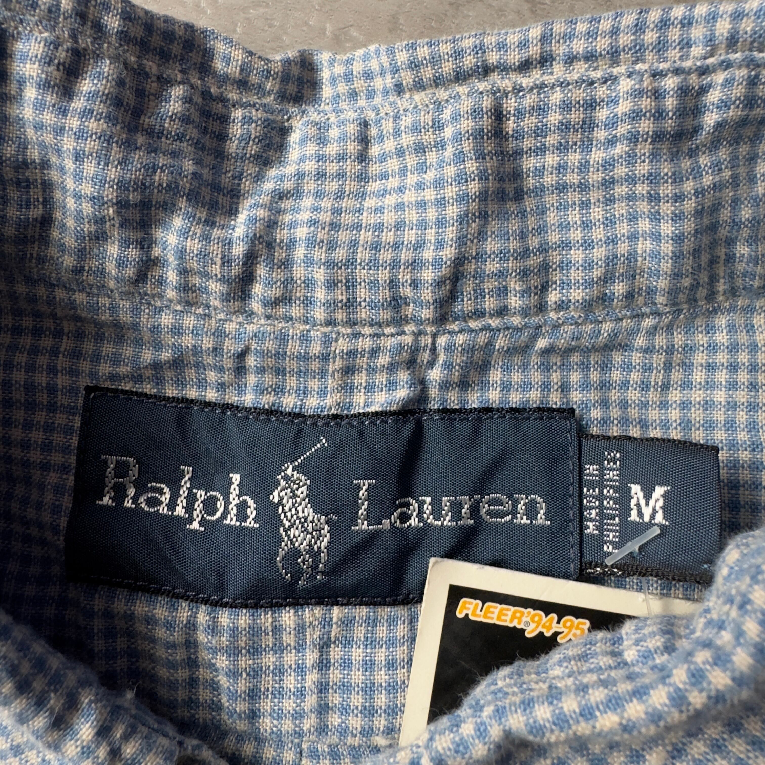 Ralph Lauren 半袖シャツ LINEN リネンシャツ M チェック ピンクポニー