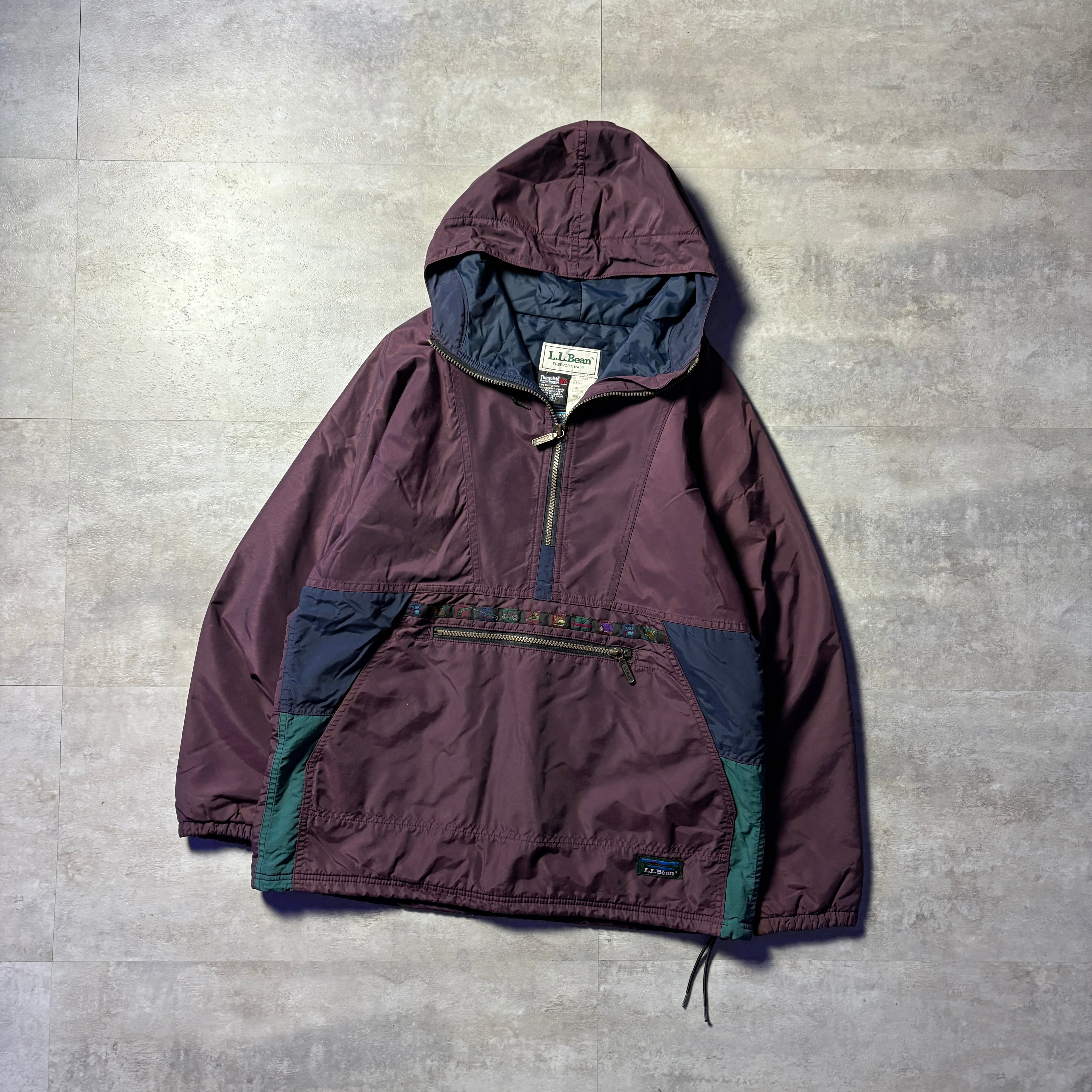 80s 90s L.L.Bean 中綿アノラックパーカー ハーフジップ ドローコード 3M Thinsulate Thermal Insulation S