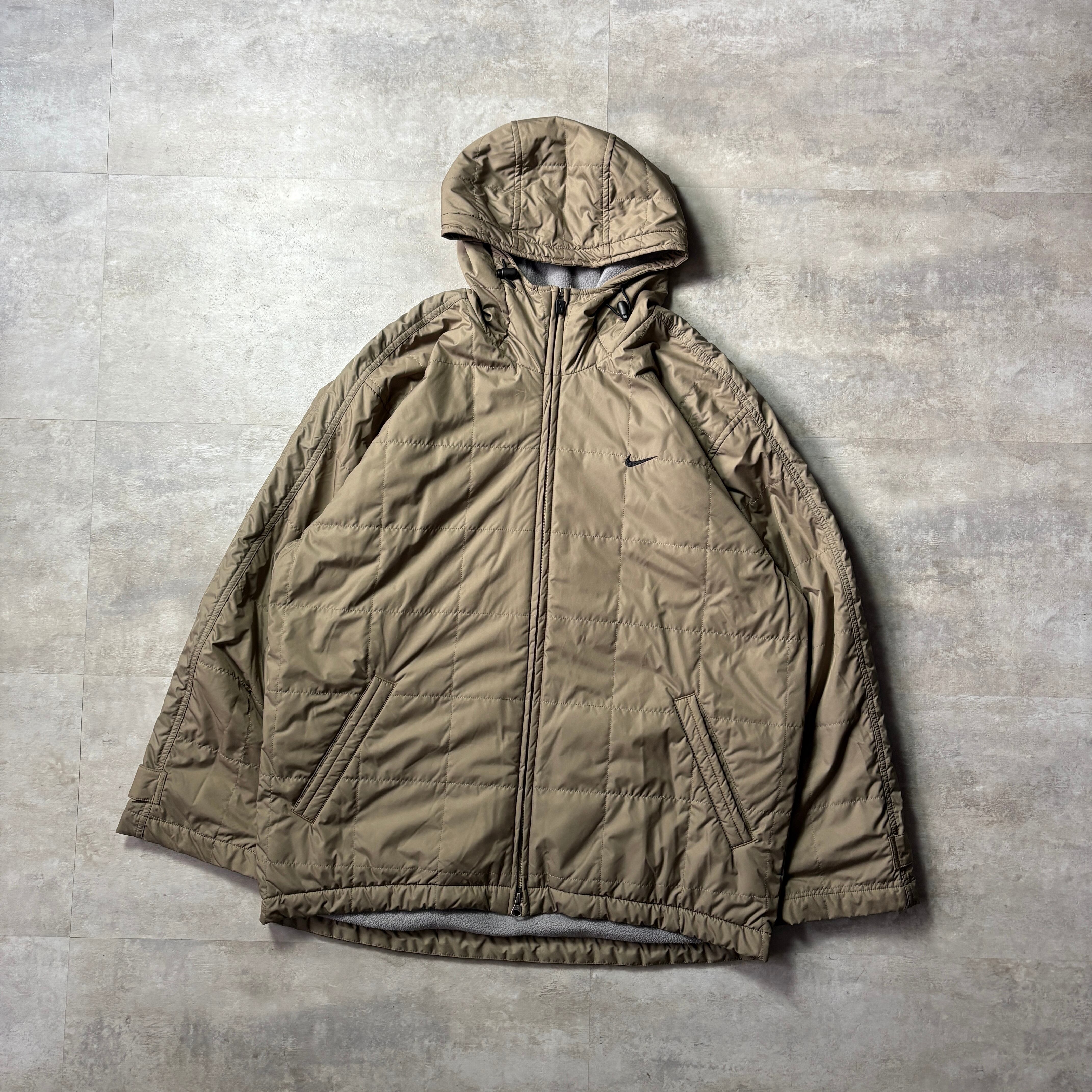 00s NIKE キルティングフードジャケット 中綿 ベージュ L
