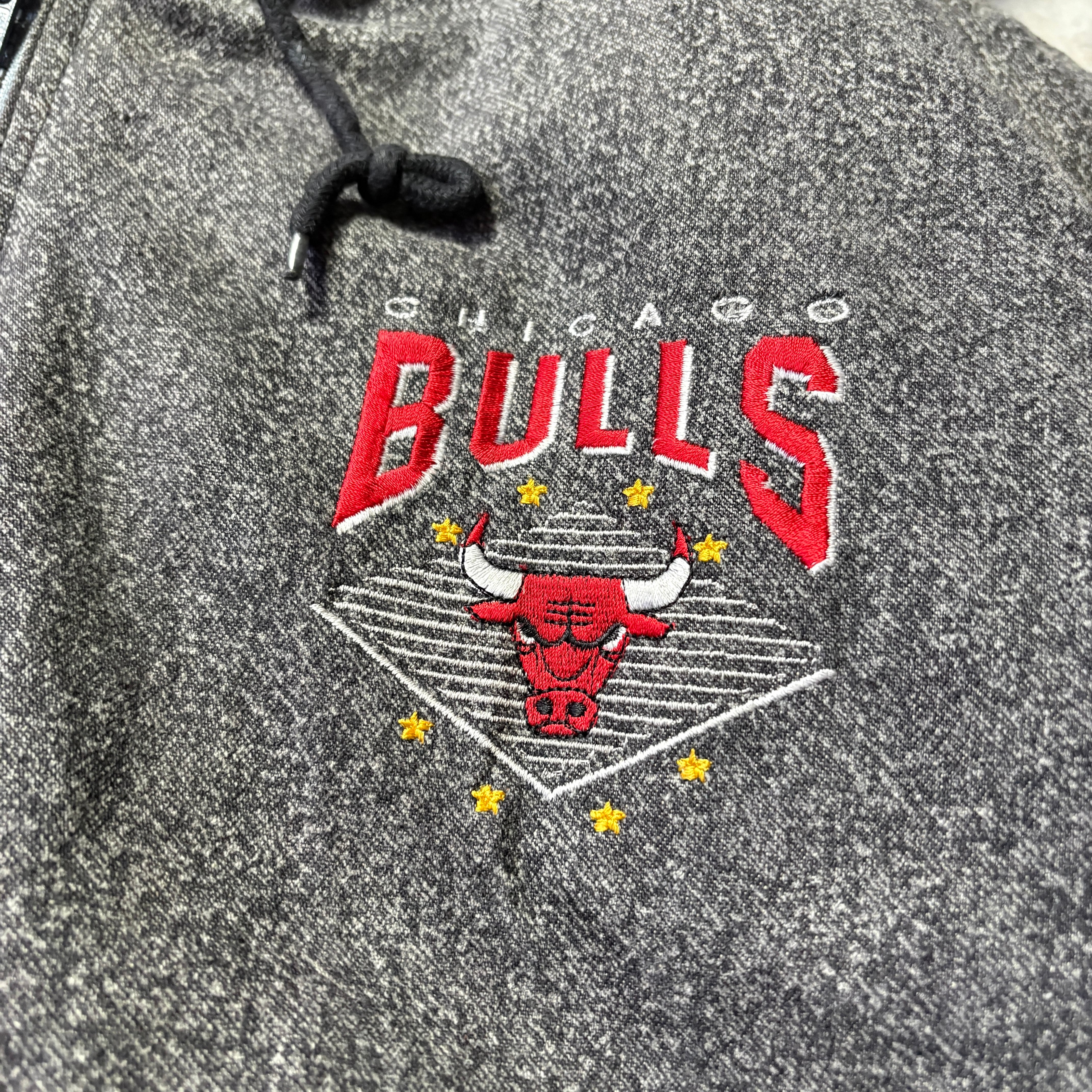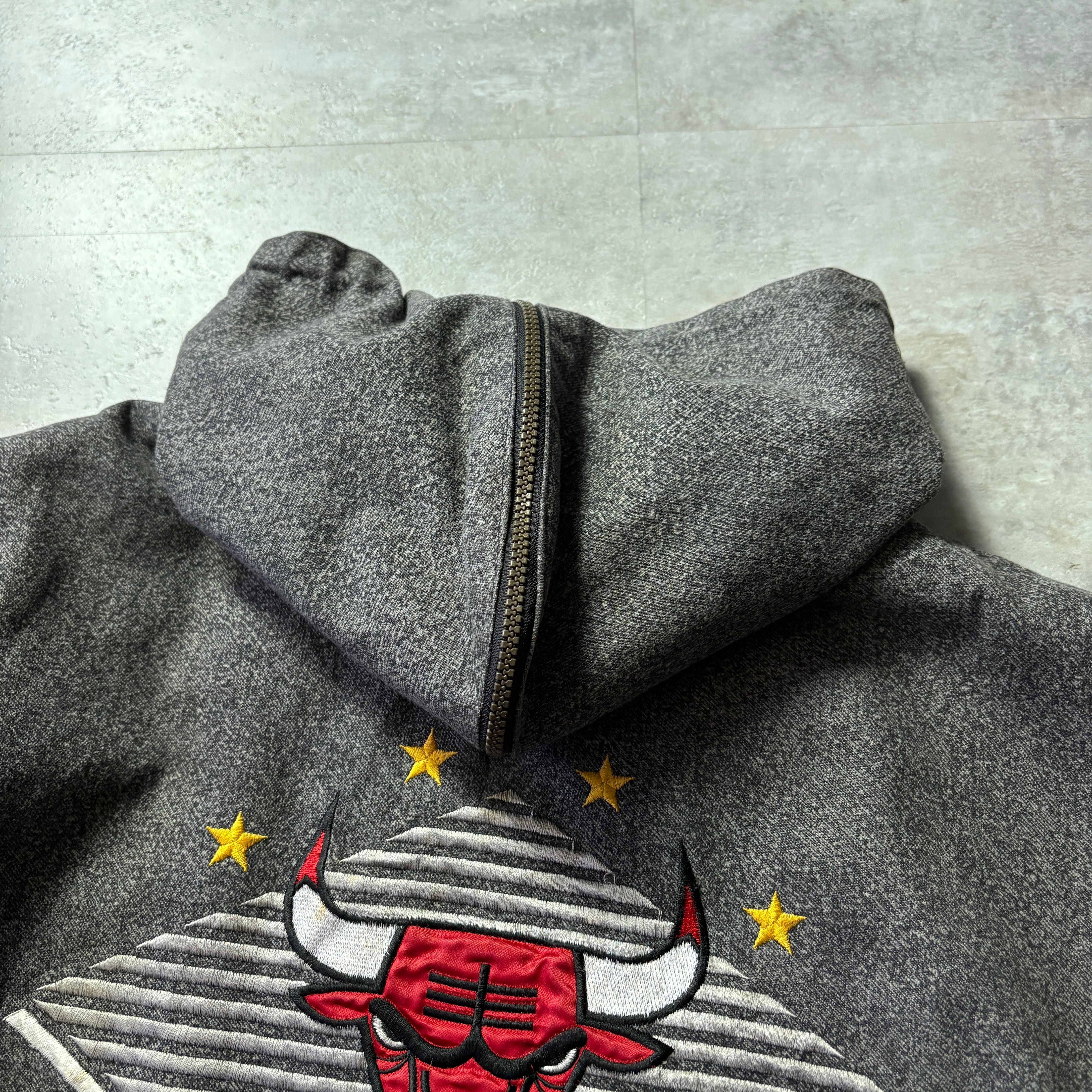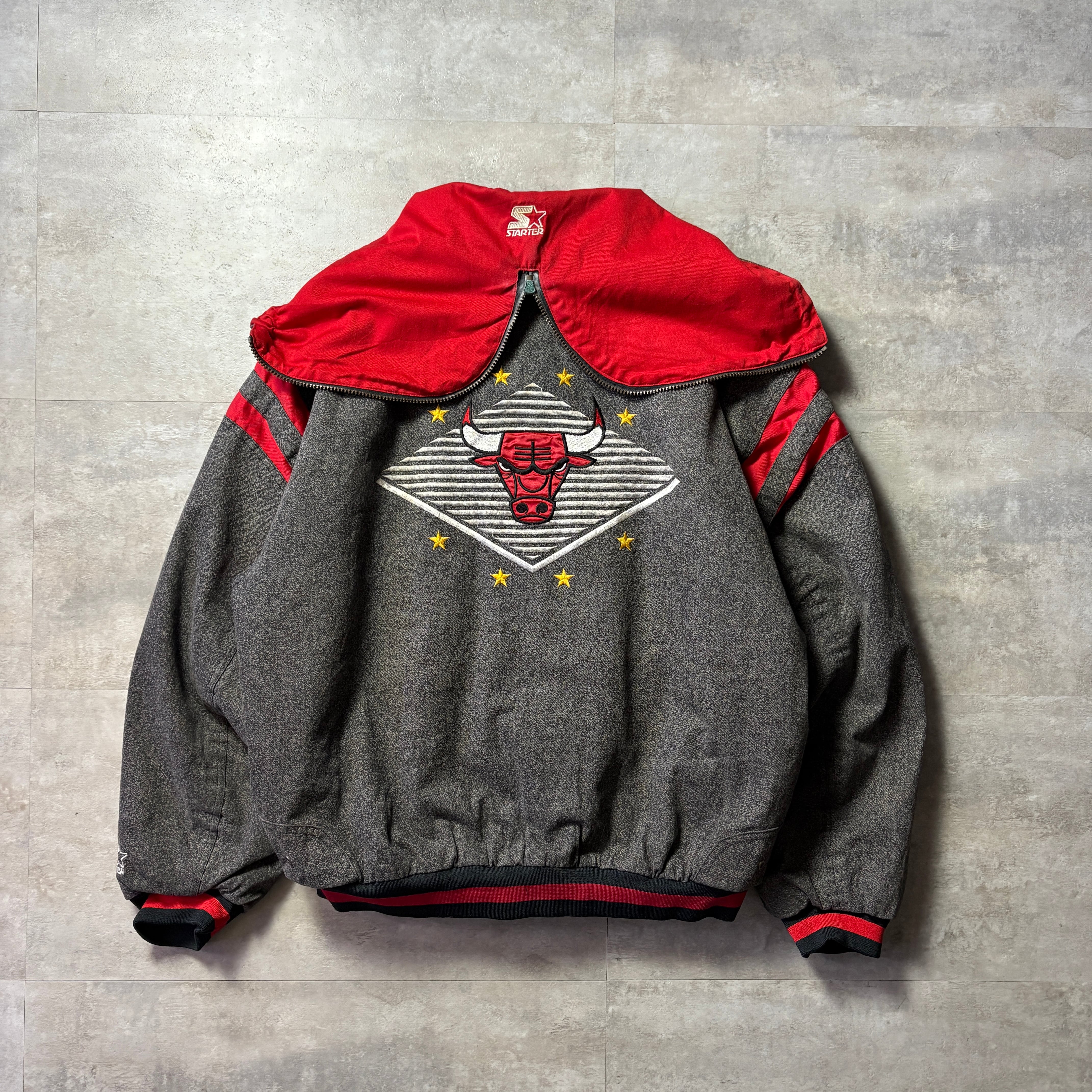 チームの戦績: このジャケットが製造された1980年代後半〜1990年代前半は、マイケル・ジョーダンがリーグのスター選手として台頭し、シカゴ・ブルズが初のNBAチャンピオンシップに向けてチームを構築していた時期にあたります。1991年についに初の優勝を果たし、黄金期(スリーピート)の幕開けとなった時期です。