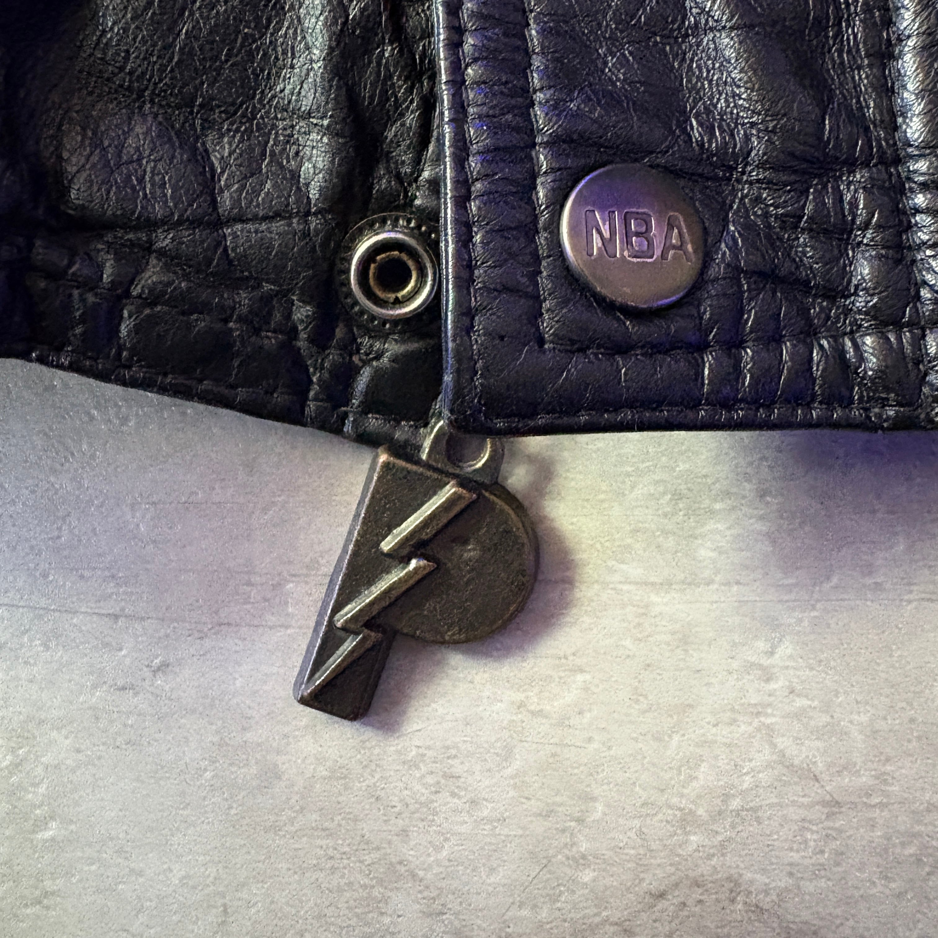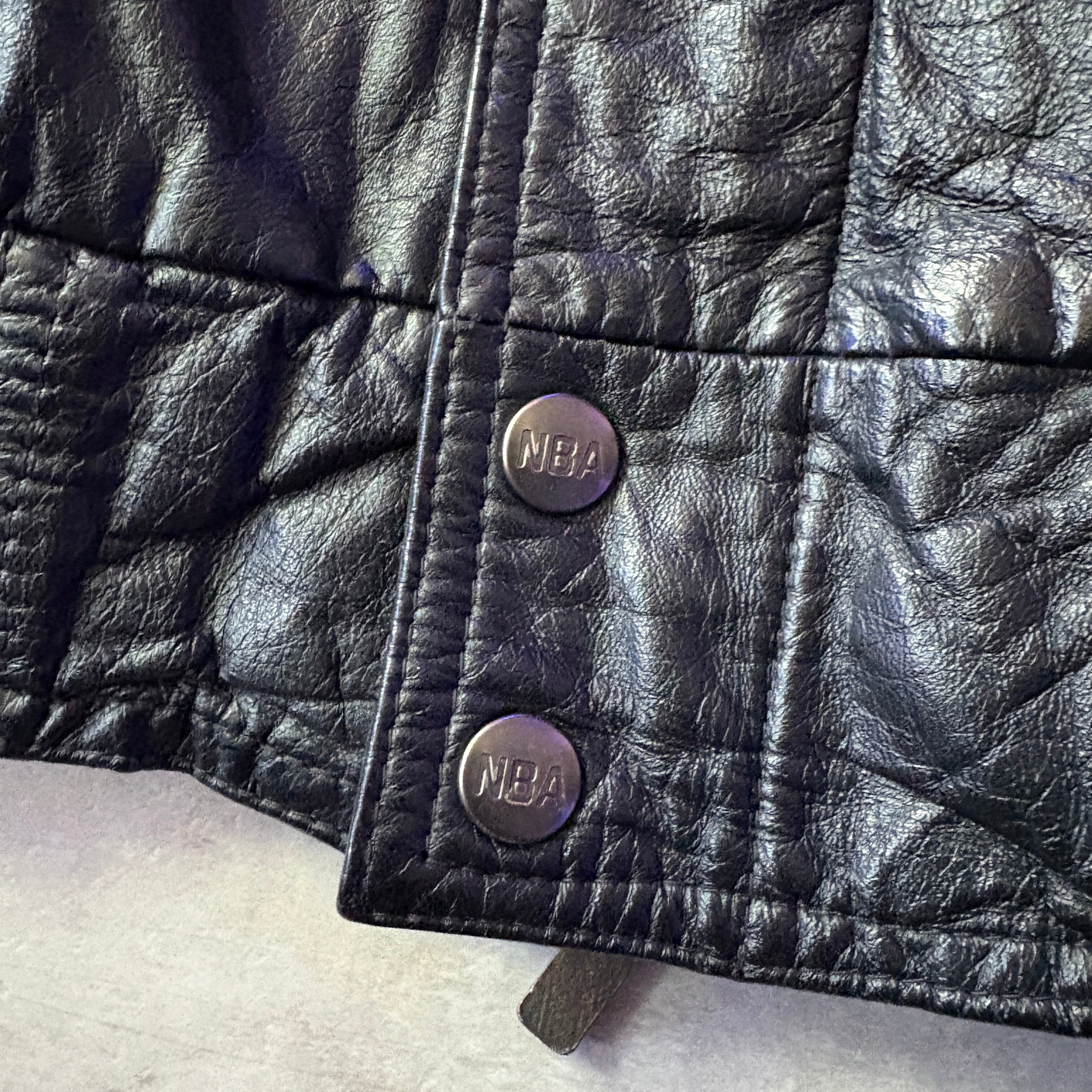 当時、NBAのライセンスアパレルは、アメリカの若者文化、特にヒップホップシーンにおいて必須のファッションアイテムであり、多くのアーティストが着用していました。このジャケットは、当時の熱狂的なファン層やコレクターにとって憧れのアイテムでした。