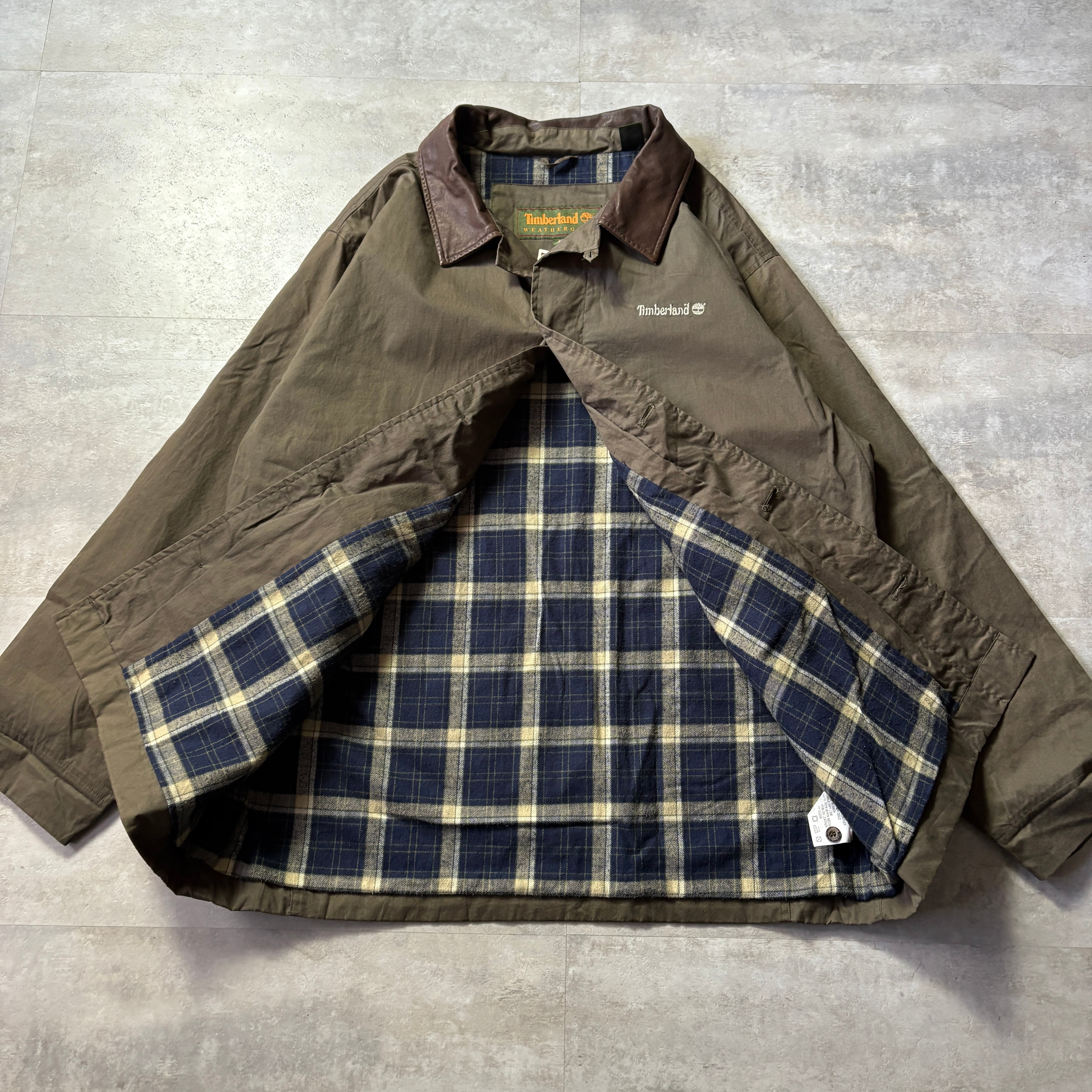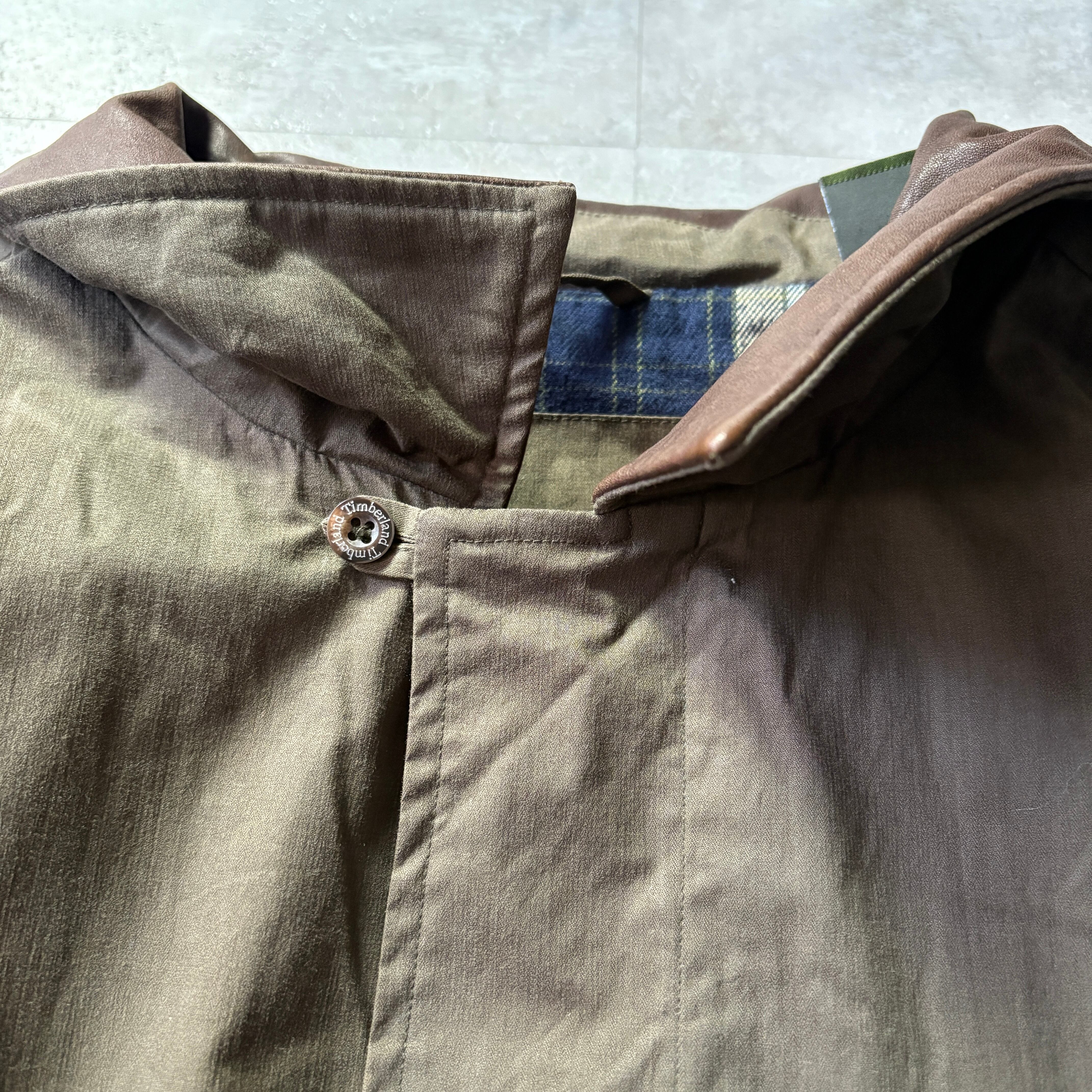 timberland オイルドジャケット風 L 襟レザー 内チェック