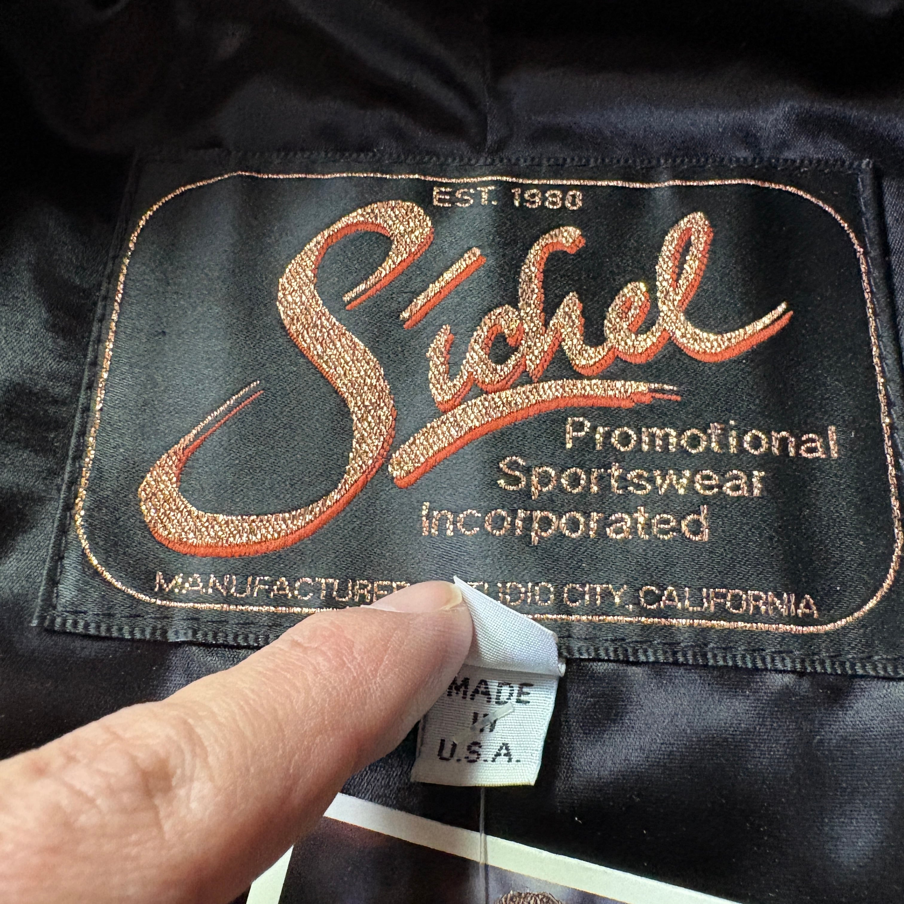 Sichelボディの特別な背景:実はこのメーカー、往年のハリウッド映画やテレビ番組のスタッフ・クルー用にカスタムジャケットを製作していた知る人ぞ知るブランドです。この一着も、何らかのエンターテイメント関連のアイテムである可能性を秘めています!