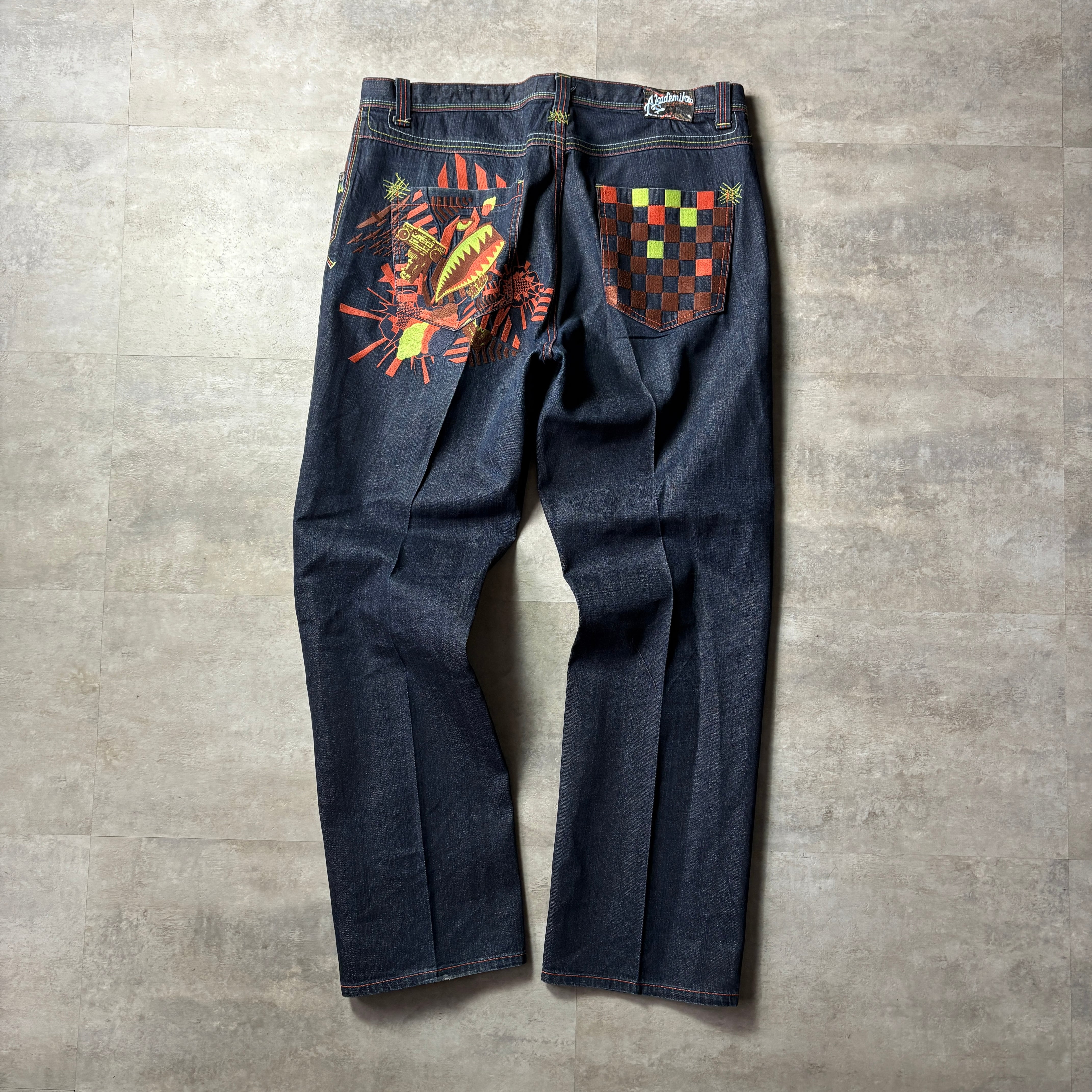 Akademiks デニムパンツ バギーパンツ ルーズパンツ HIPHOP B系 W40 刺繍