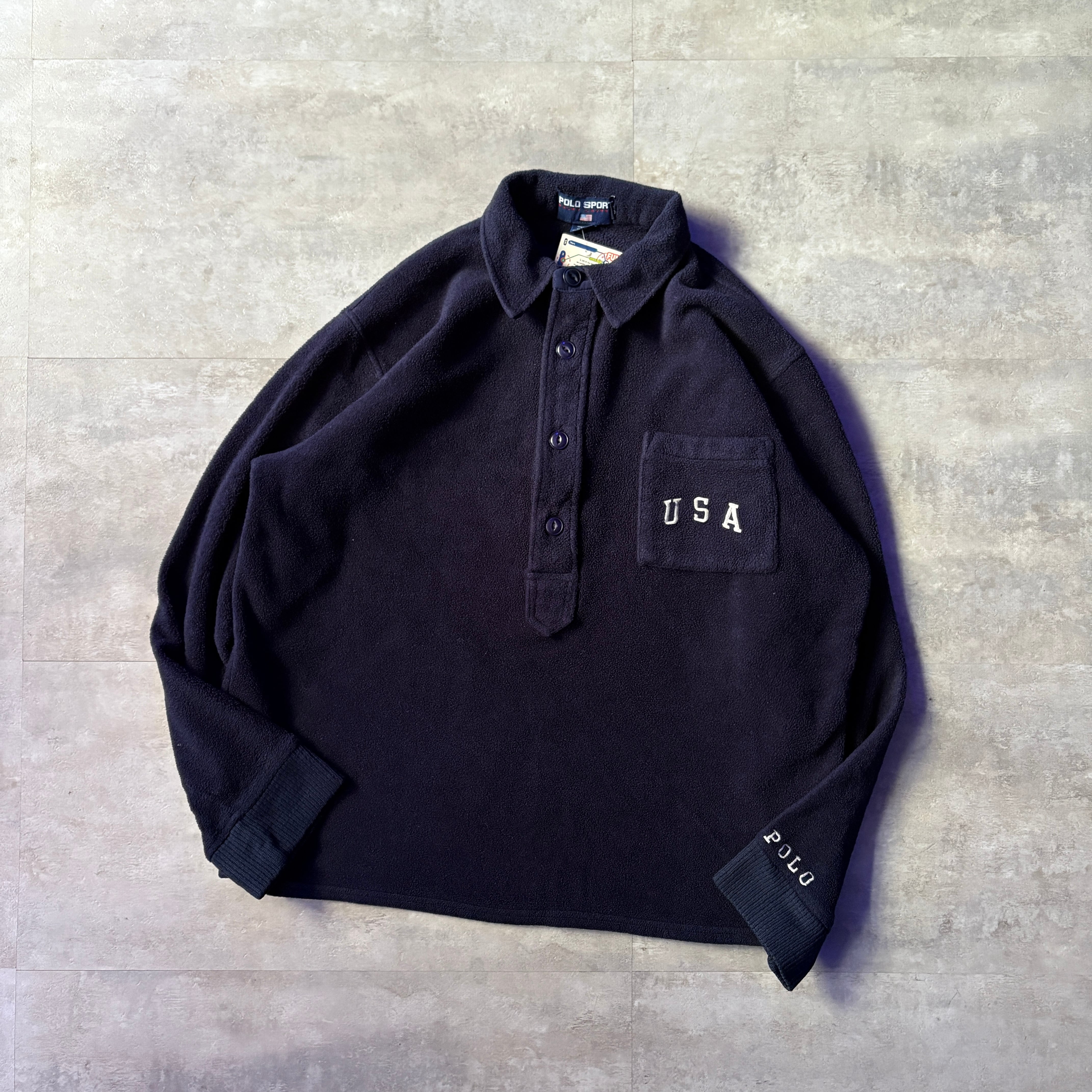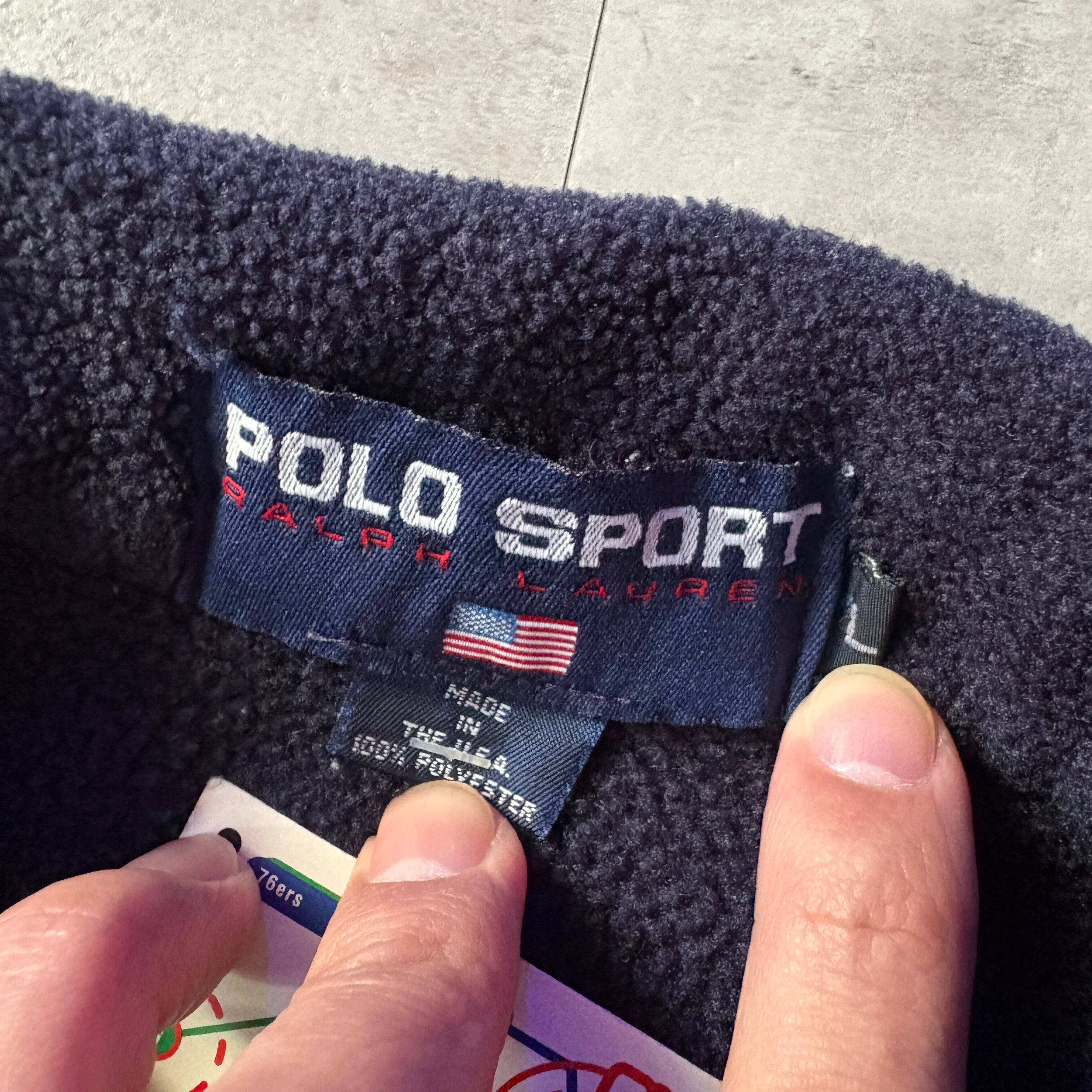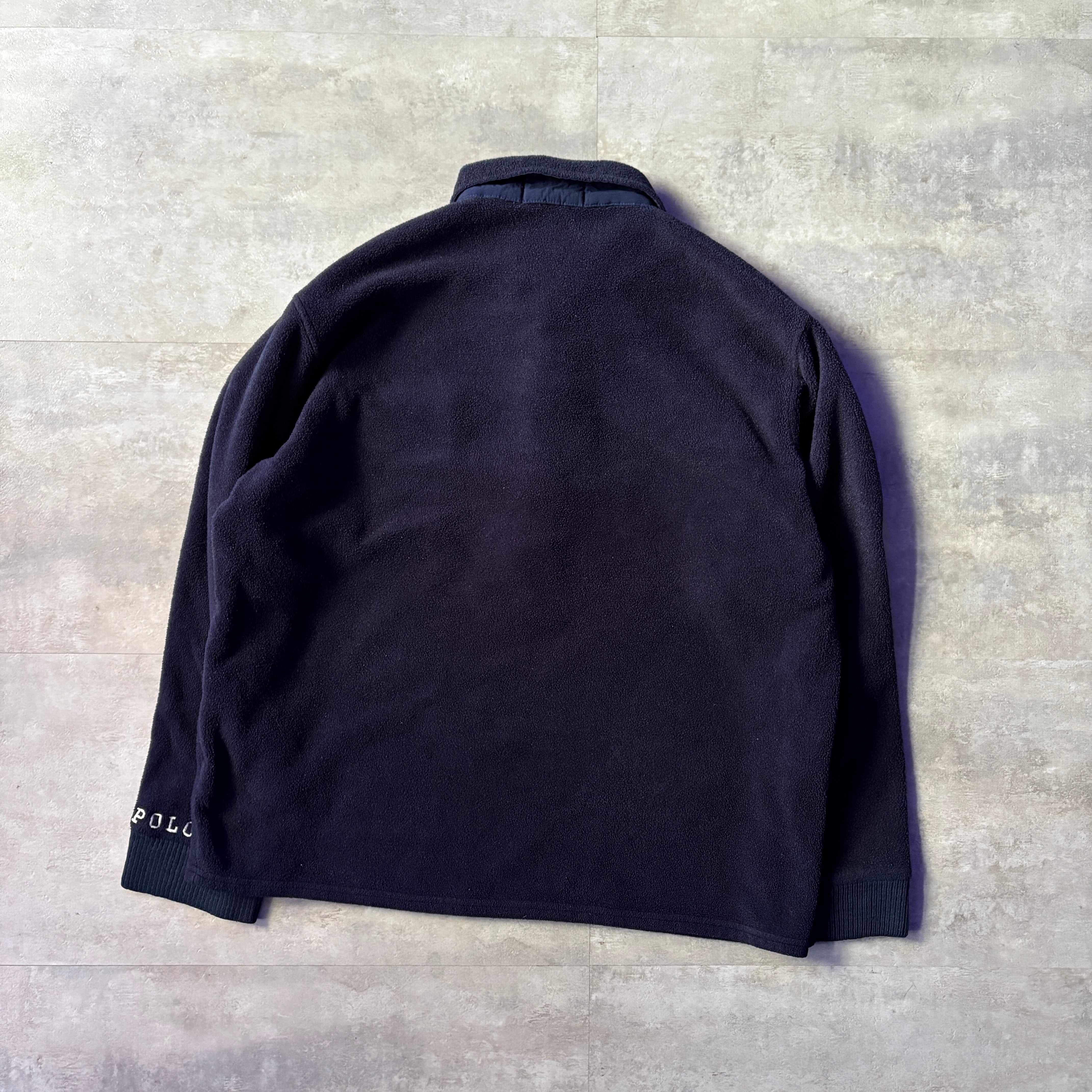 POLO SPORT フリース 長袖ポロシャツ 刺繍 USA製 L ネイビー