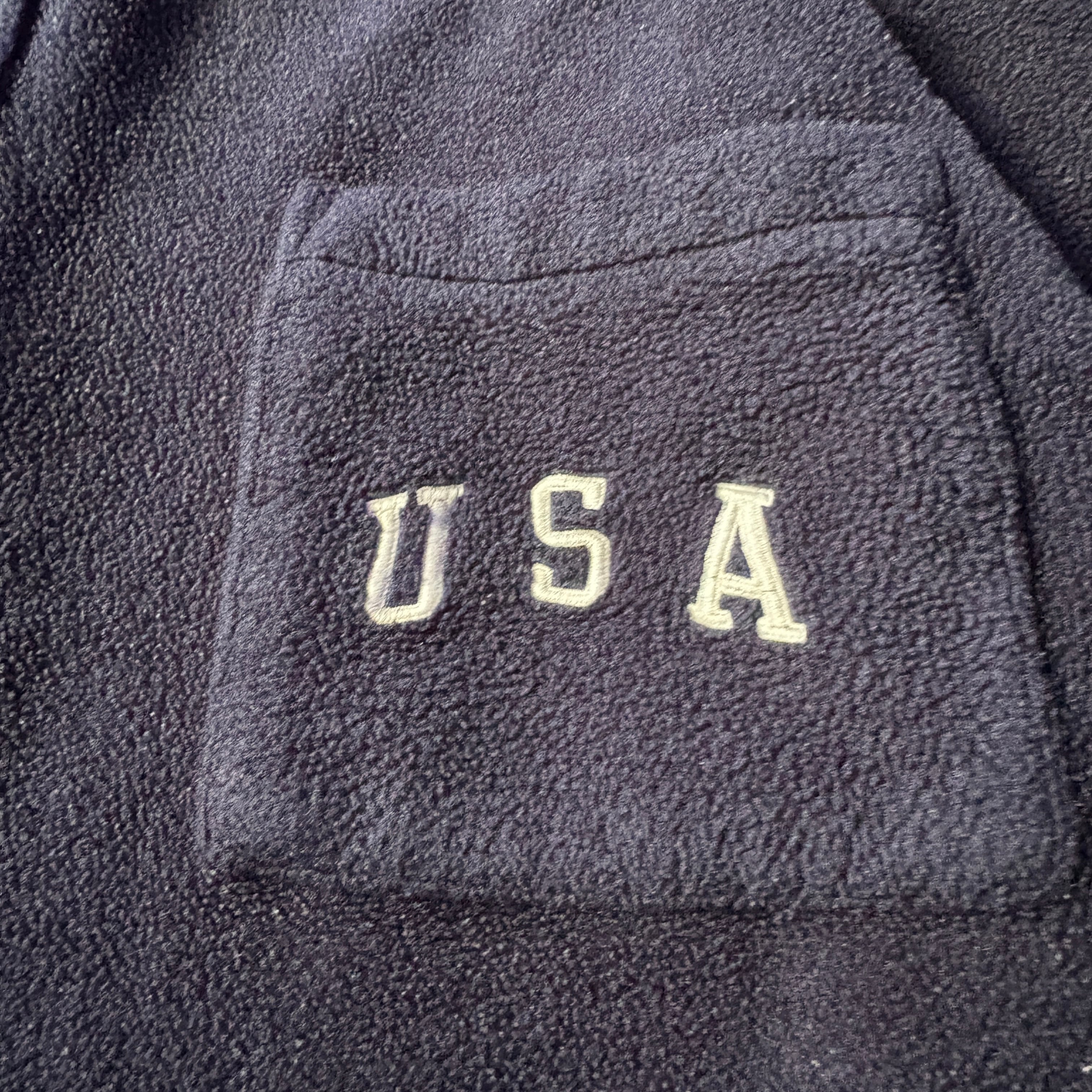 一番の魅力は、左袖の星条旗ワッペンとポケットの「USA」ロゴ刺繍!