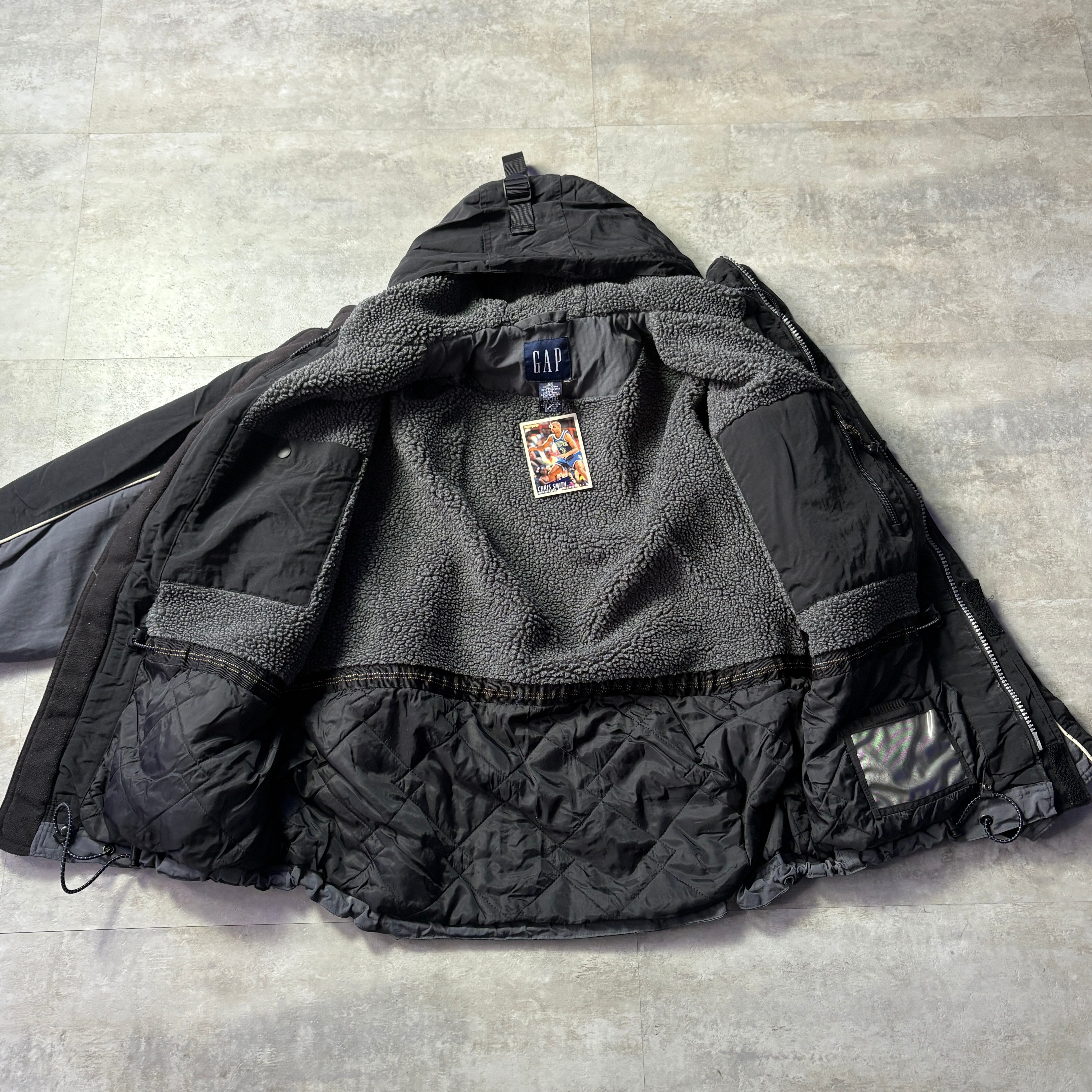 OLD GAP マウンテンパーカー XS 多ポッケ ダブルジップ 裾ドローコード 袖マジックテープ 内フリース