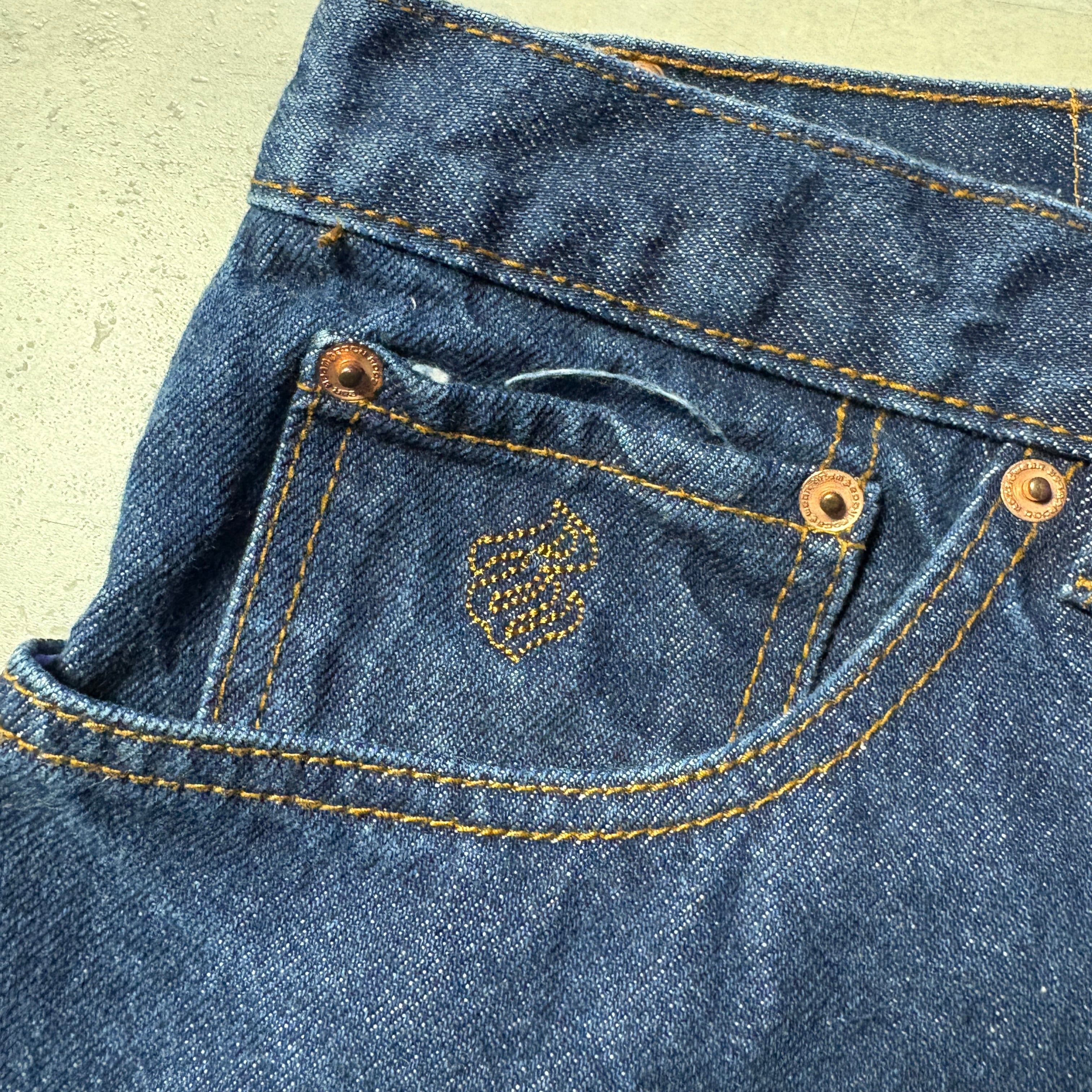 深みのあるインディゴブルーの生地は、履き込むほどに体に馴染み、自分だけのヴィンテージな表情へと育てていく楽しみも味わえます。