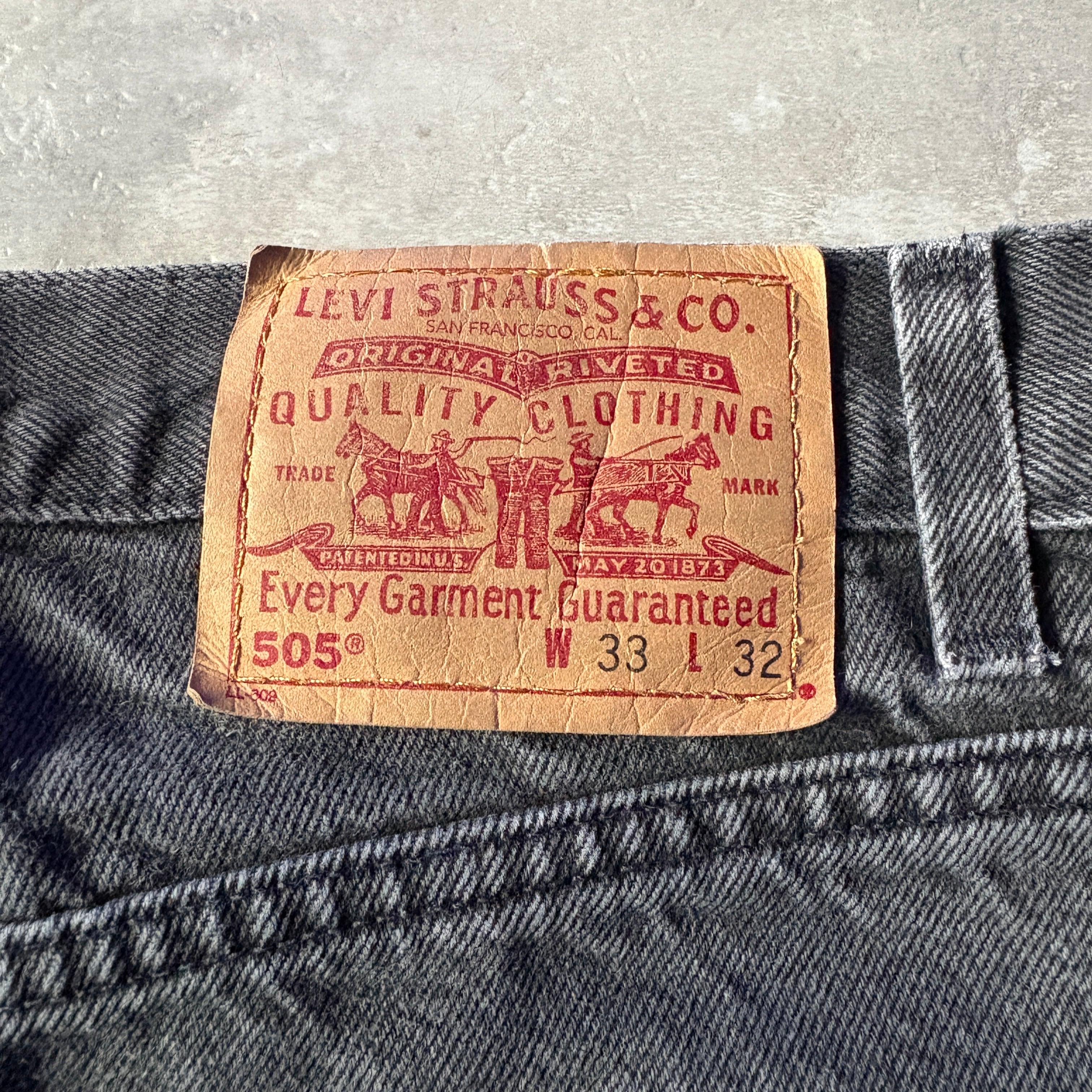 02s Levi's 505 "REGULAR FIT" ブラックデニムパンツ US企画 メキシコ製 フェード W33 L32