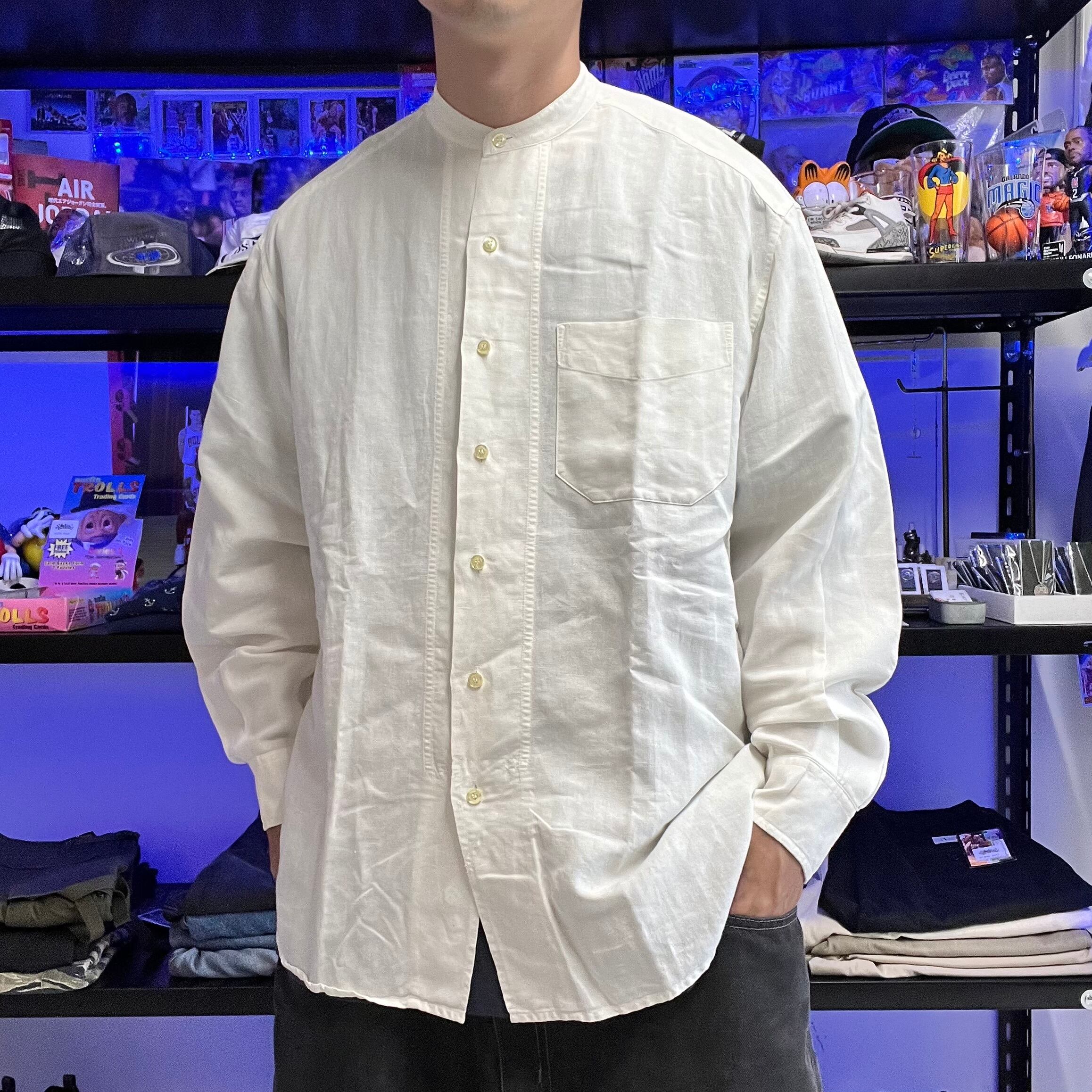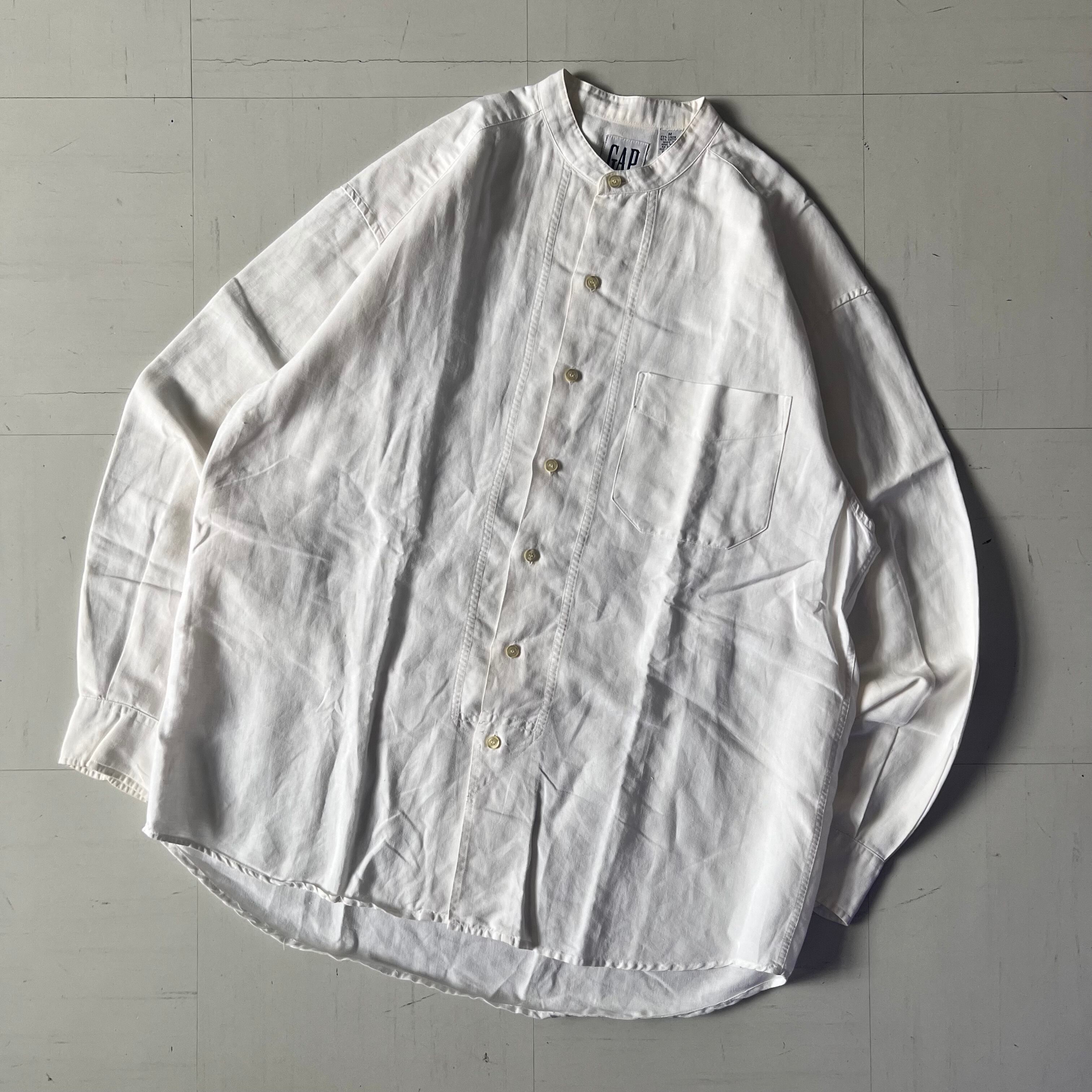 GAP Linen × cotton L/S ノーカラーシャツ リネン × コットン M
