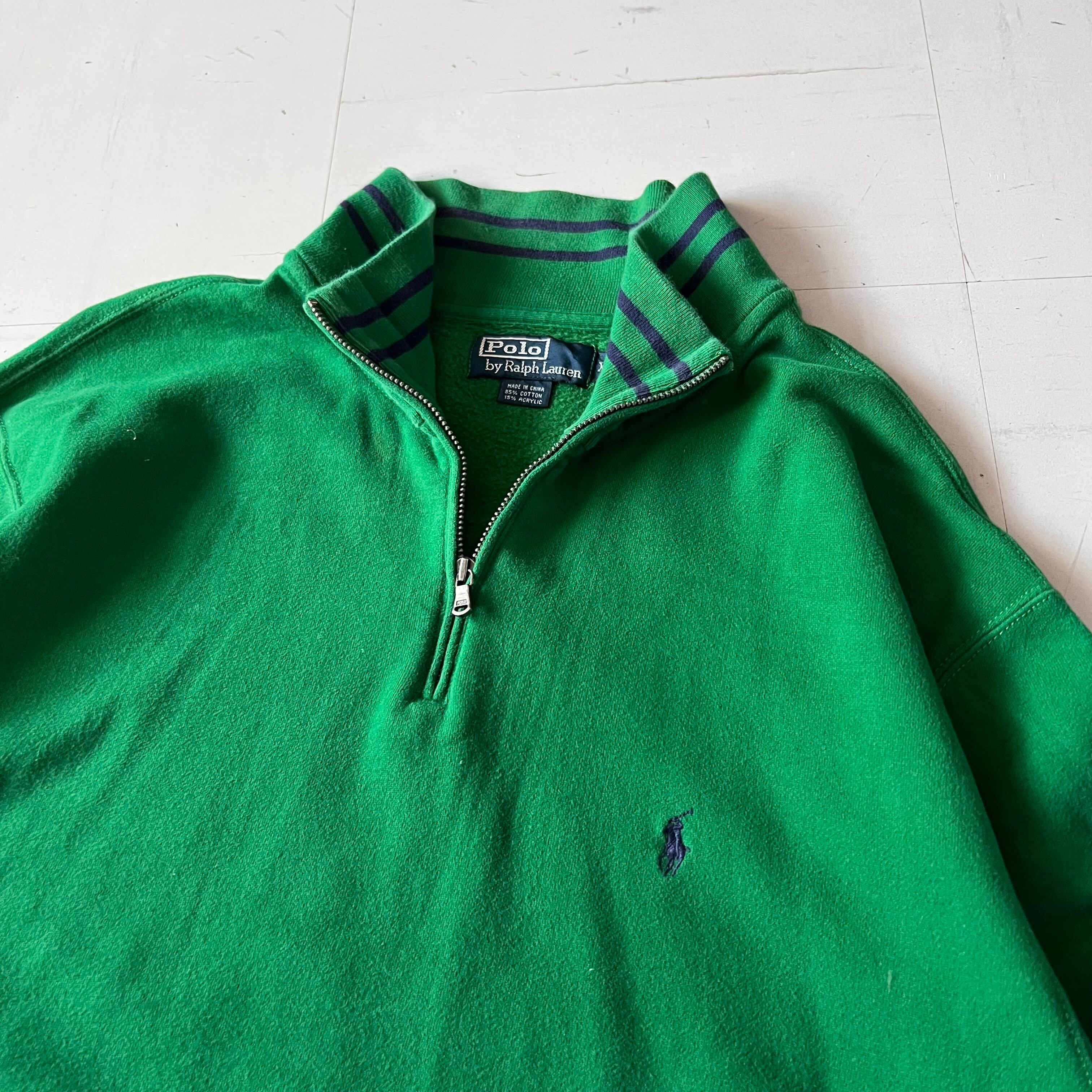 polo by Ralph Lauren ハーフジップスウェット XL ポッケあり グリーン