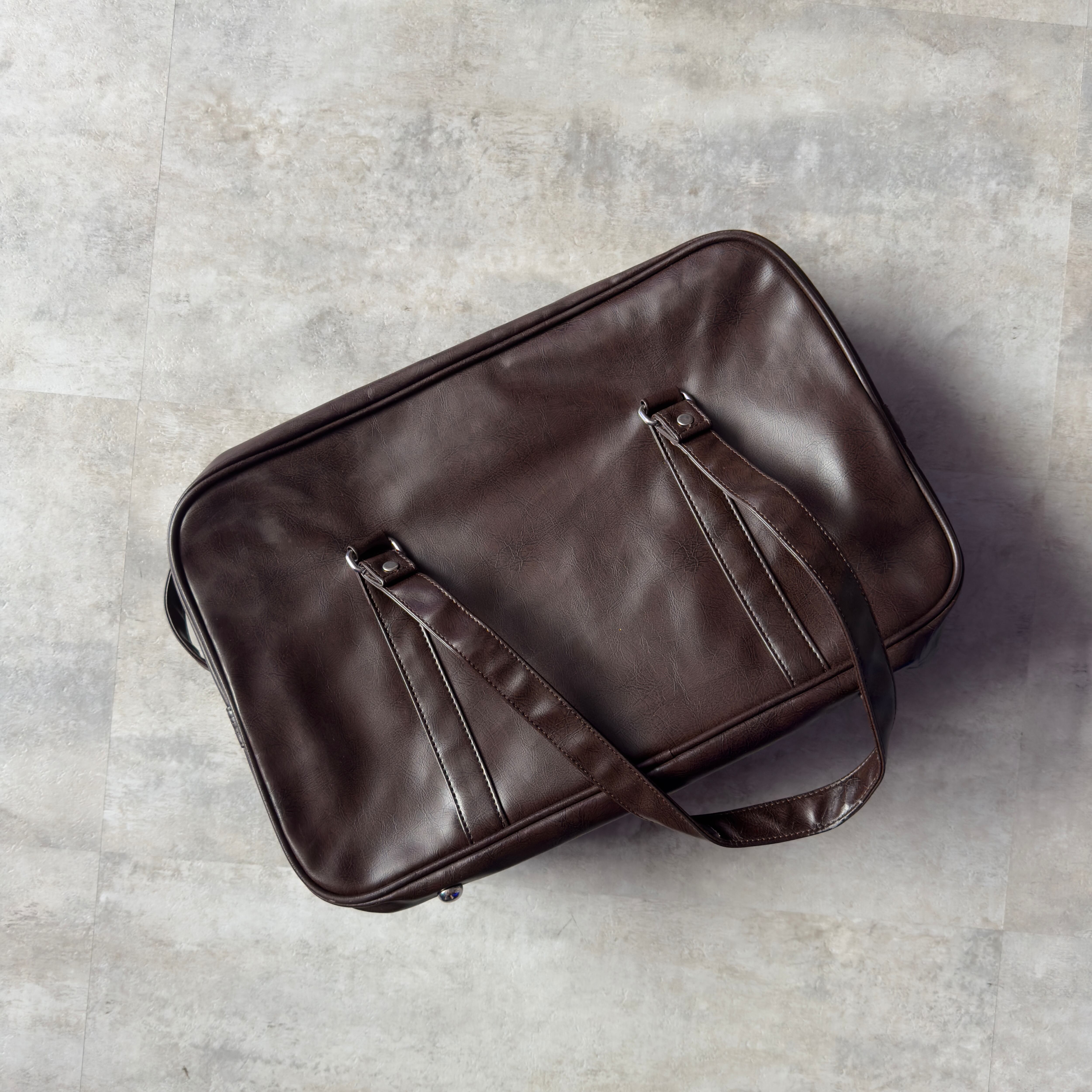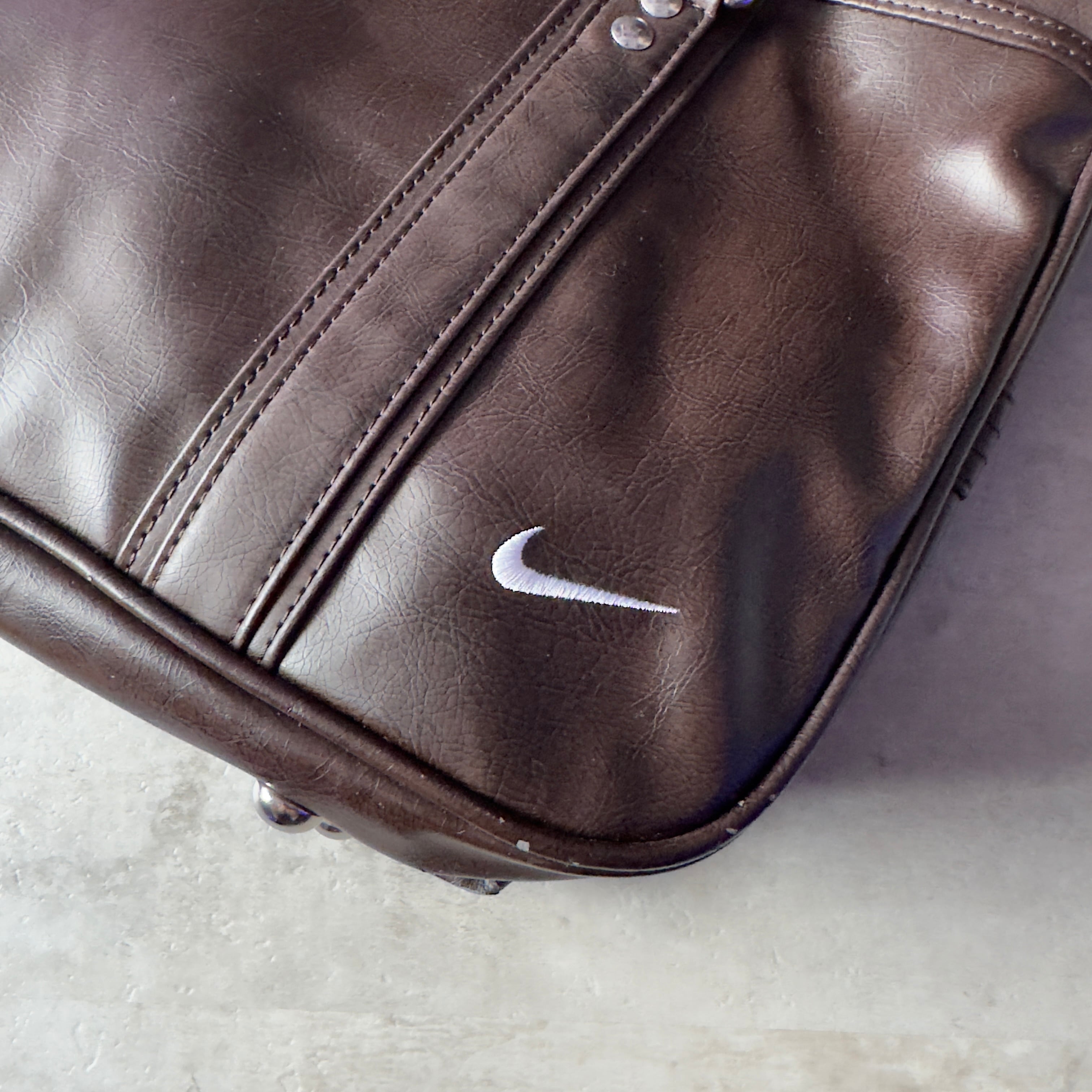 00s NIKE レザースクールバック スウォッシュ 刺繍 ブラウン 使用感あり