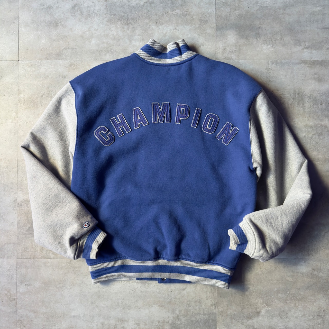 00s デカタグ champion スウェット スタジャン Mサイズ 一部ボタン欠損